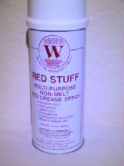 RED STUFF IS A MULTI PURPOSE NON MELT RED GREASE SPRAY.PRODUCT SPRAYS OUT AS A THICK LIQUID AND QUICKLY TRANSFORMS INTO A GREASE IN 1-2 MINUTES WHICH ALLOWS IT LUBRICATE HARD TO REACH PLACES.CURED LUBRICANT WITHSTANDS HEATS TO 500 DEGREES F.